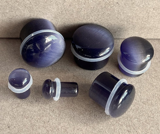 PAIR Violet Cat Eye Stone Plugs Single Flare Tunnels Earlets Gauges Body Jewelry