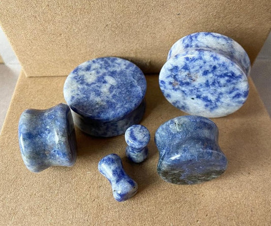 PAIR Brazilian Sodalite Stone Plugs Blue Organic Gauges Earlets Body Jewelry