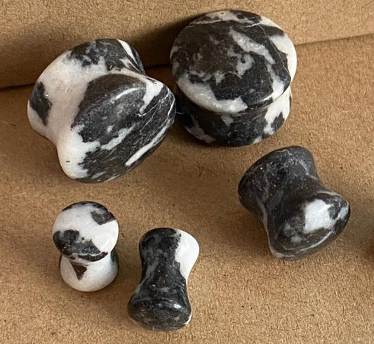 PAIR Natural Zebra Jasper Stone Double Flare Plugs Tunnels Earlet Organic Gauges