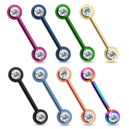 PAIR Titanium Anodized Double Clear Gem Nipple Rings Barbells 14g 14 gauge