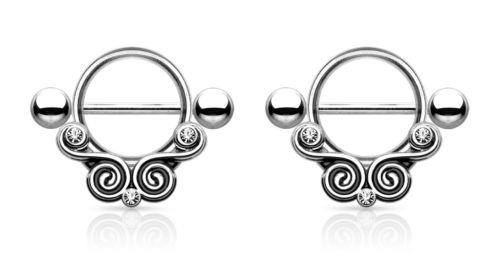 PAIR Lace Swirls w/ Gems Nipple Shields Rings
