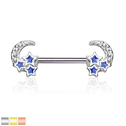 PAIR CZ Crescent Moon w/ Blue Stars Nipple Rings