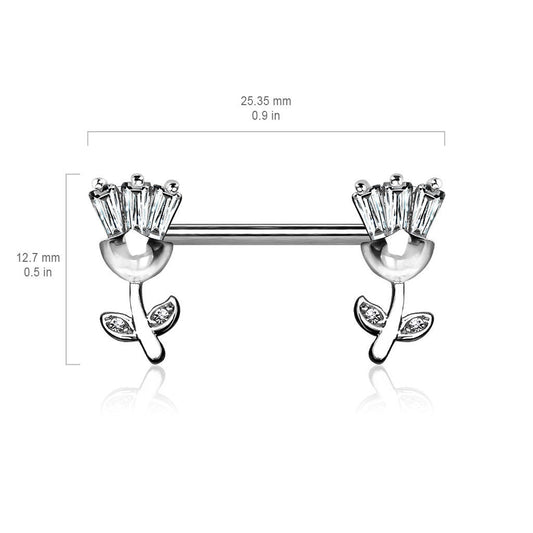 PAIR Princess Cut CZ Gem Tulip Flowers Nipple Rings