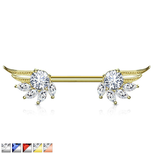 PAIR Marquise Gem Angel Wings Nipple Rings Shields