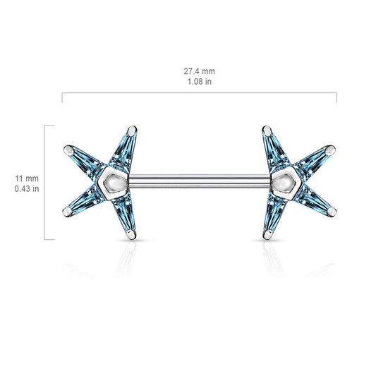 PAIR CZ Paved Starburst Star Nipple Rings Shields