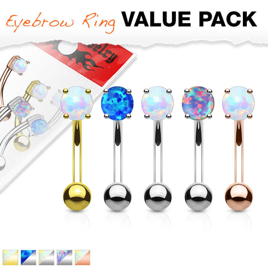 5pc Value Pack Prong Set Opal Surgical Steel Eyebrow Rings