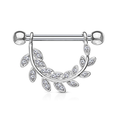 PAIR Gem Paved Leaf Dangle Nipple Rings Shields