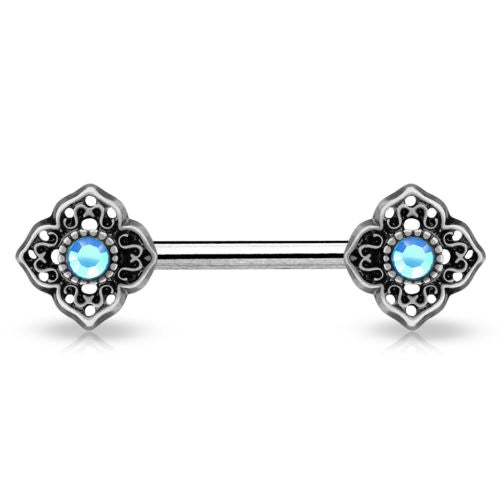 PAIR Gem Tribal Flower Nipple Rings Shields Barbells