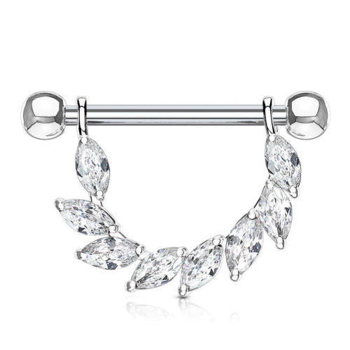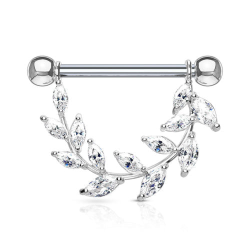 PAIR Marquise Gem Vine Dangle Nipple Rings Shields