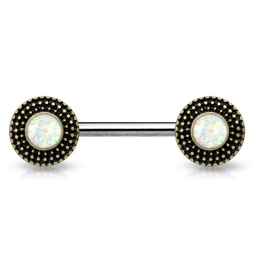 PAIR Opal Glitter Center Tribal Shield Nipple Rings Shield