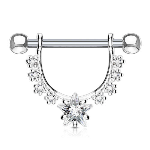 PAIR CZ Gem Star Center Dangle Nipple Rings Shields