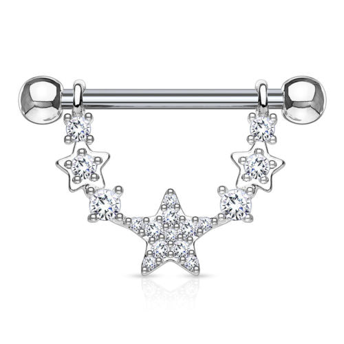 PAIR Gem Paved Stars Dangle Nipple Rings Shields