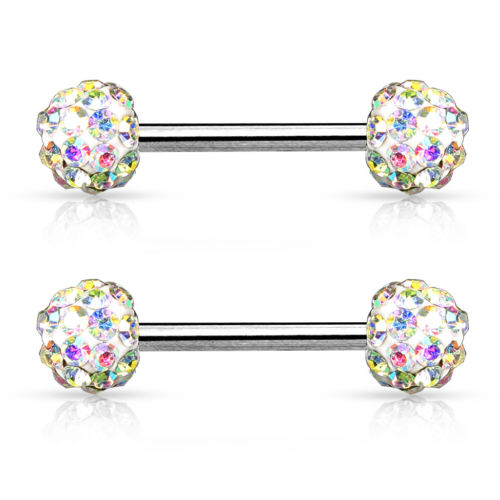 PAIR Crystal Paved Ferido Balls Nipple Rings