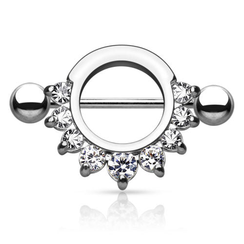 PAIR CZ Gem Flower Ends Nipple Ring Shields