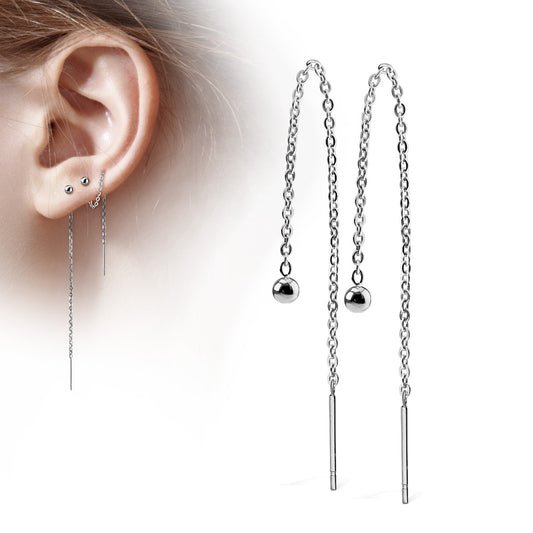 PAIR of Two Chain Free Falling Steel Balls 20g Earrings