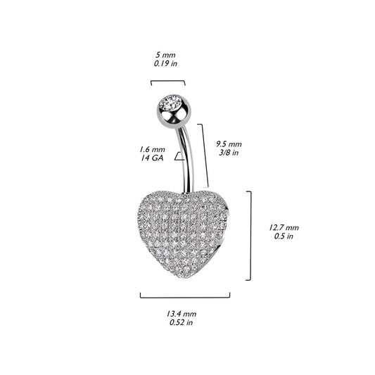 1pc Paved CZ Gems Heart Belly Button Ring Pierced Navel Gold Plated Naval