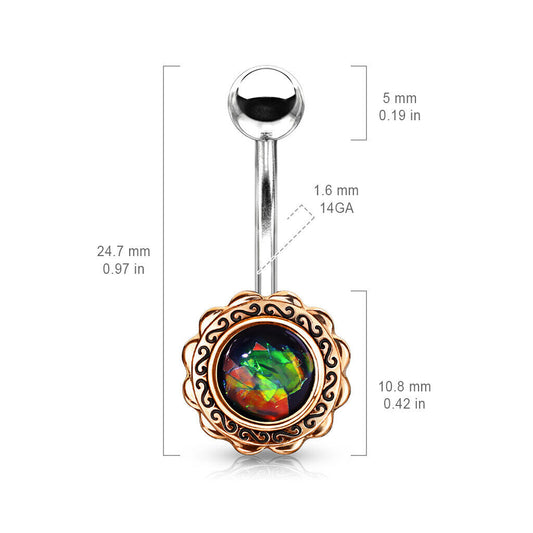 Rose Gold Filigree Flower Belly Ring Opal Glitter Center Naval Piercing Navel
