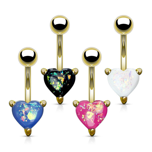 Solitaire Heart Opal Glitter Gem Belly Ring 316L Surgical Steel Navel Naval