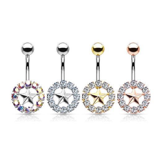 1pc Gem Surrounded Star Belly Button Ring Pierced Navel Gold Plated Naval