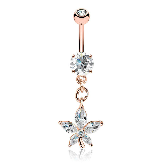 1pc Marquise Cut CZ Gem Flower Dangle Surgical Steel Belly Ring Navel Naval