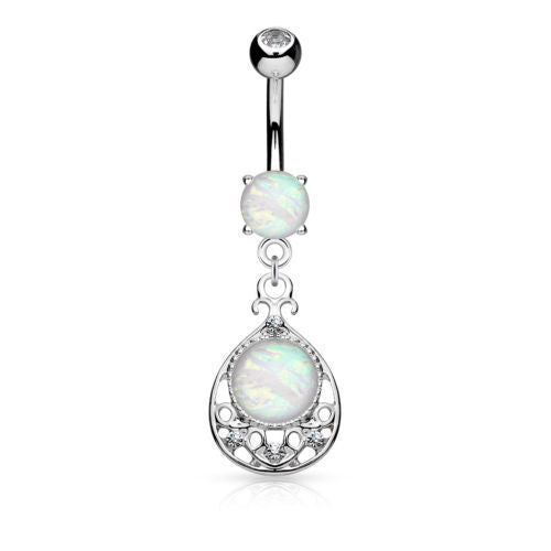 1pc Opal Glitter Center Vintage Filigree Belly Ring Navel Naval