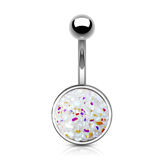 1pc Druzy Stone Style 316L Surgical Steel 14g Belly Ring Pierced Navel Naval
