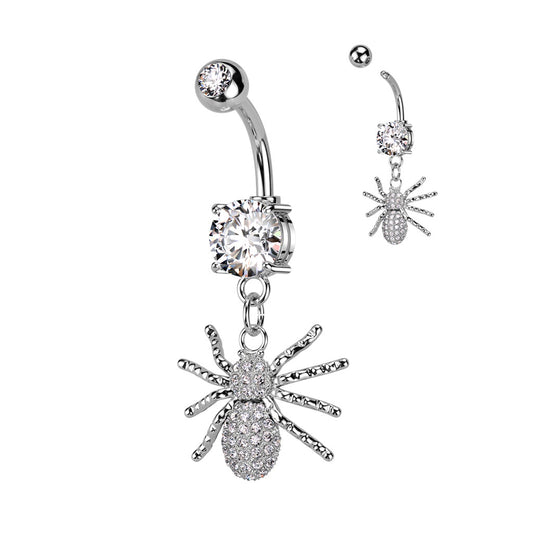 1pc CZ Gem Paved Spider Belly Button Ring Pierced Navel Gold Plated Naval