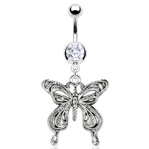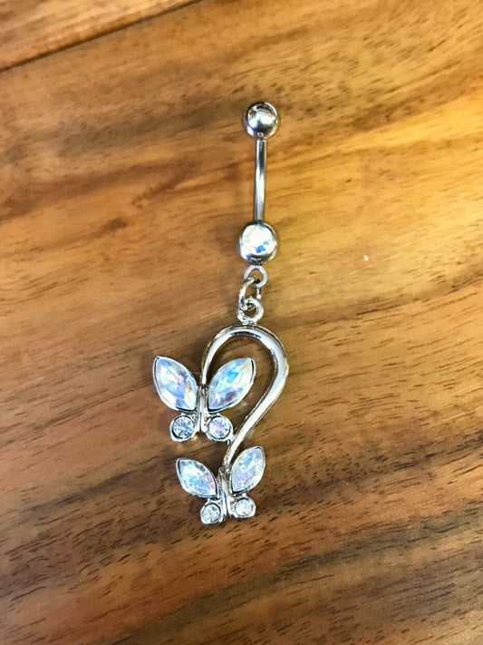 1pc Double Butterfly CZ Gems Dangle Belly Ring Navel Naval - choose your color