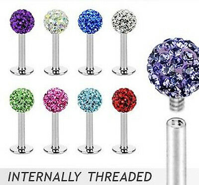 Internally Threaded Labret w/Ferido Crystal 3mm Gem Ball - CHOOSE YOUR COLOR