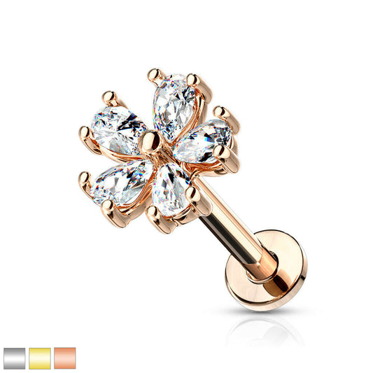 1pc CZ Petals Flower 16g Labret Internally Threaded Steel Monroe Tragus Helix