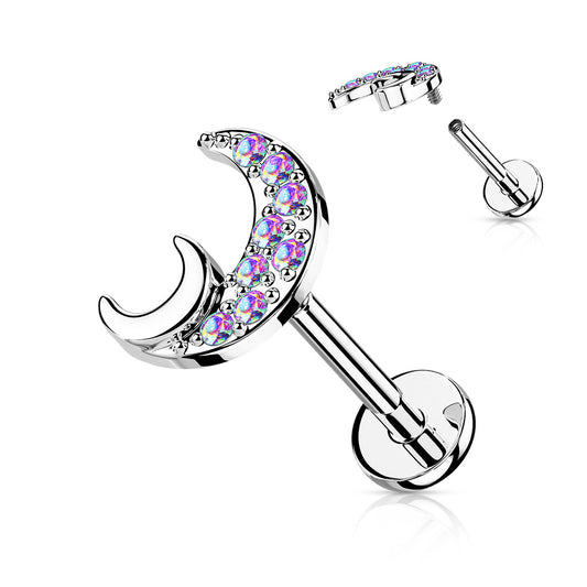 1pc CZ Crescent Moon 16g Labret Internally Threaded Steel Monroe Tragus Helix