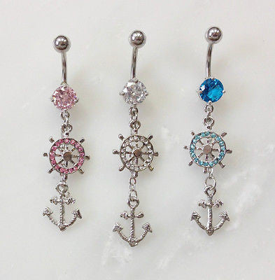 3pcs Anchor & Ship Wheel Belly Rings Navel Naval
