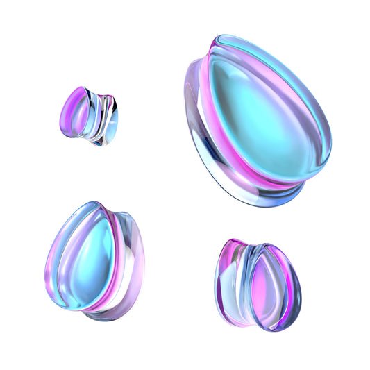 PAIR Mermaid Iridescent Glass Tear Drop Double Flare Plugs