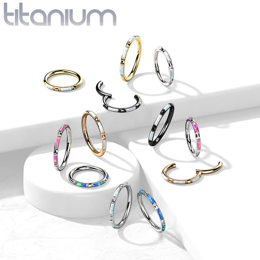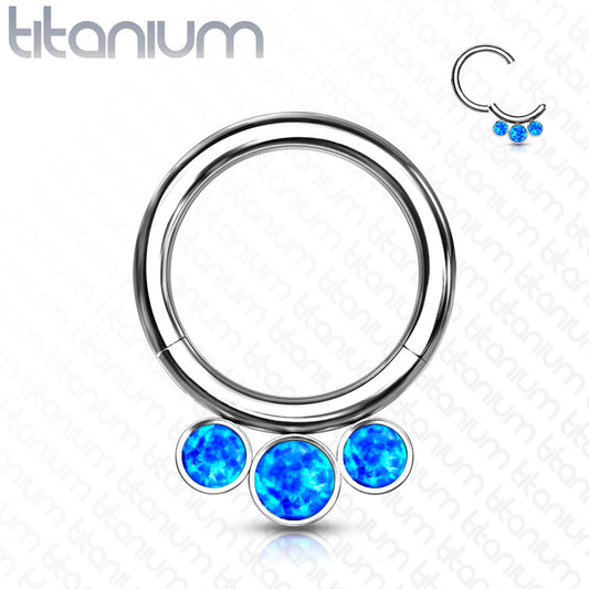 1pc Solid Titanium 3 Bezel Set Opals Hinged Segment Ring Helix Septum Clicker