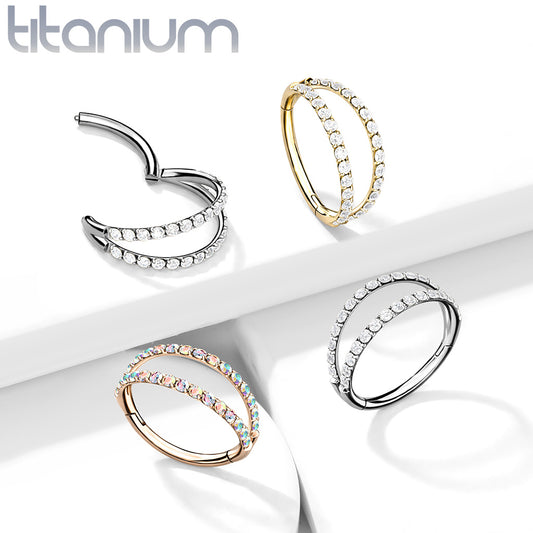 1pc Titanium Hinged Segment Ring Double Lined CZ Gems Septum Hoop Helix Daith