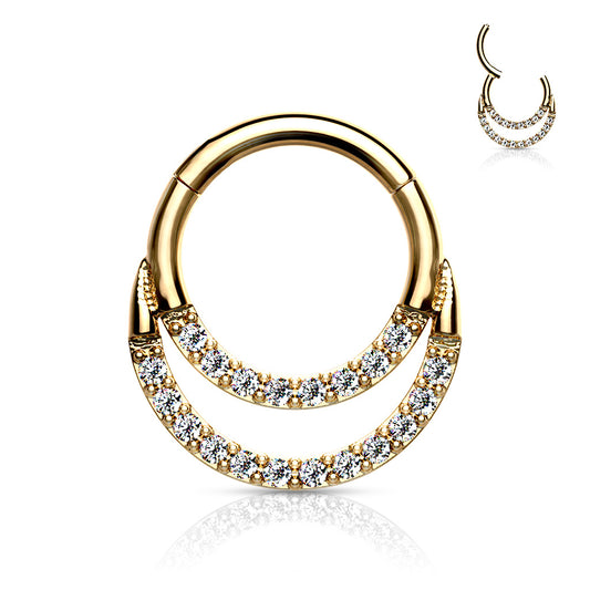 1pc Hinged Segment Ring CNC Set Double Lined CZ Gem Septum Hoop Helix Daith