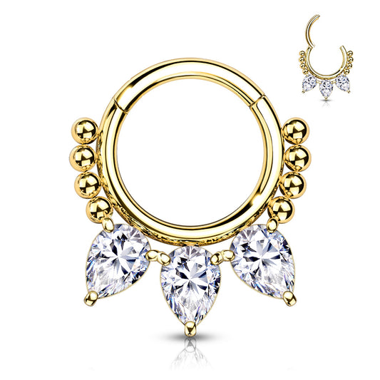 1pc Pear CZ Gems & Beads Hinged Segment Ring 16g Septum Clicker Helix Cartilage