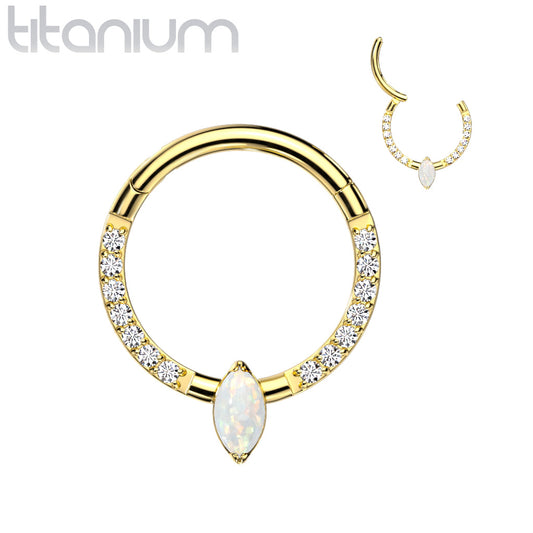 1pc Solid Titanium Hinged Segment Ring Marquise Gem or Opal Helix Septum Clicker