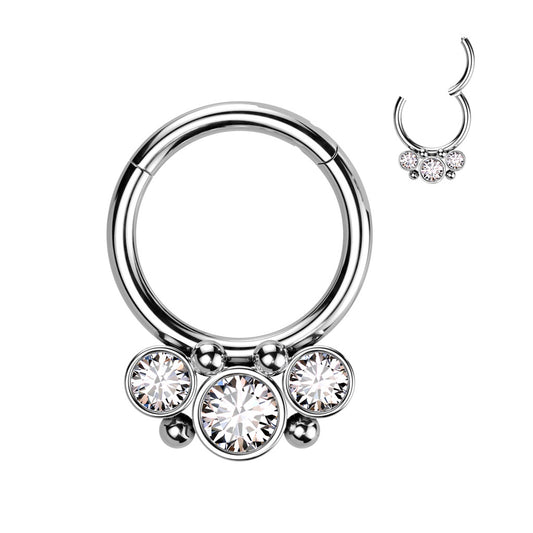 1pc Three Bezel Set Gems Hinged Segment Ring 16g Septum Clicker 316L Steel