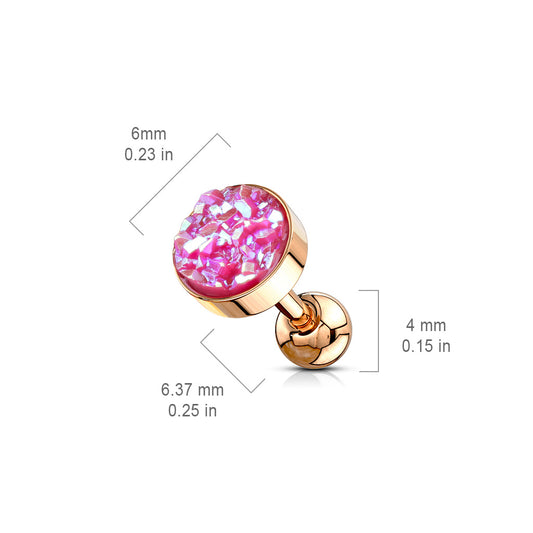 1pc Druzy Stone Flat Top Rose Gold Tragus Ring 16g 1/4"