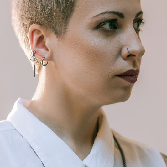 1pc Bar Chain Triangle Tragus Stud Helix Ear Cartilage Ring 316L Surgical Steel
