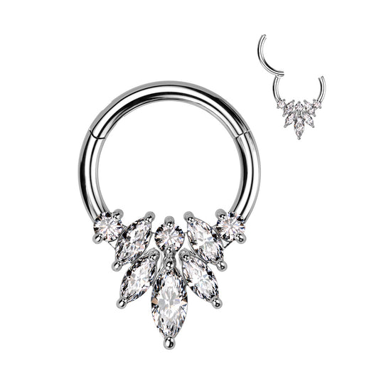 1pc Marquise Gem Fan Hinged Segment Ring 16g Septum Clicker Helix Orbital Daith