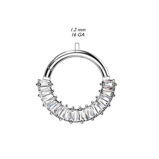 1pc Solid Titanium Baguette CZ Gems Hinged Segment Ring Helix Cartilage Clicker