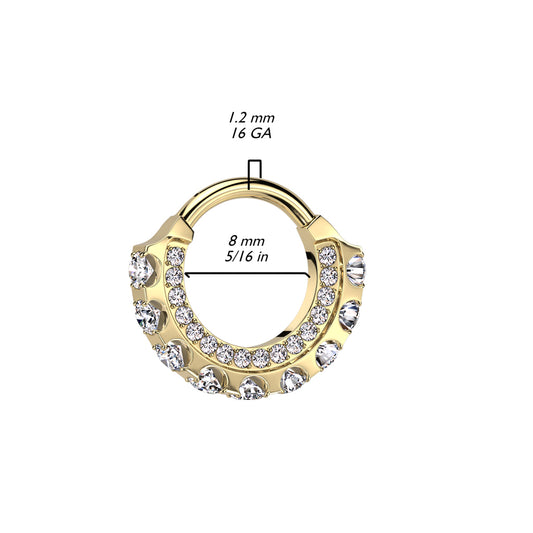 1pc CNC Front & Outer CZ Gems Hinged Segment Ring 16g Septum Clicker Helix Daith