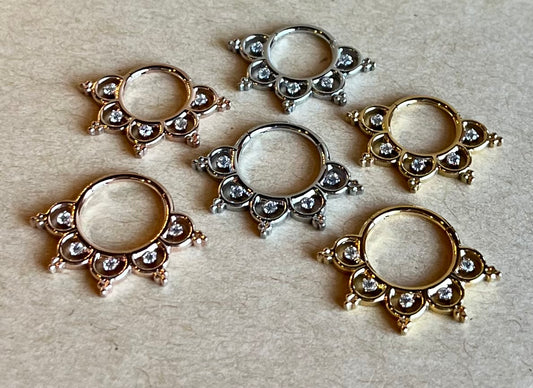 1pc Gem Center Petals Hinged Segment Ring 16g Septum Clicker Helix Orbital Daith