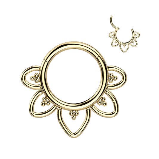 1pc Lotus Design Hinged Segment Ring Hoop Helix Daith Septum 316L Surgical Steel