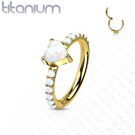 1pc Solid Titanium Half Opals Heart Hinged Segment Ring Helix Septum Clicker