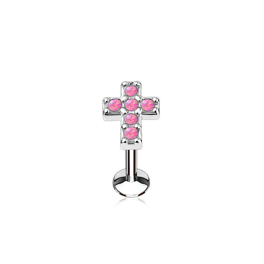 1pc Opal Cross Steel Labret Stud 16g Internally Threaded Helix Daith Tragus Monroe