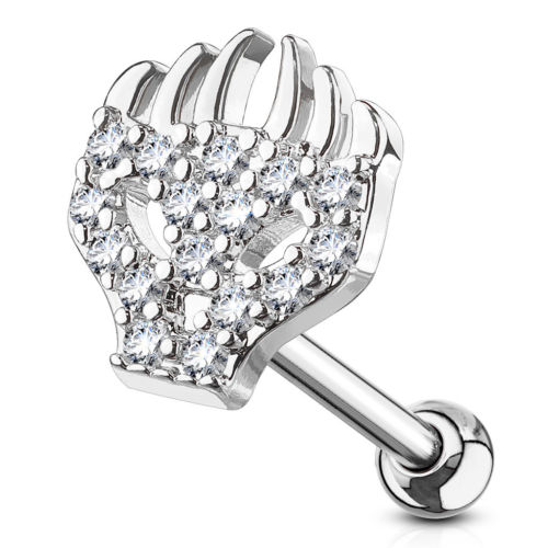1pc CZ Gem Flaming Skull Tragus Ring 16g 1/4"
