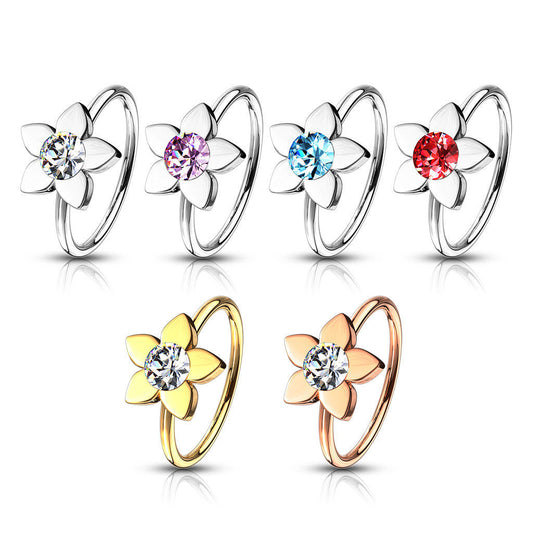 1pc Bendable Crystal Gem Flower Nose Hoop / Cartilage Ring